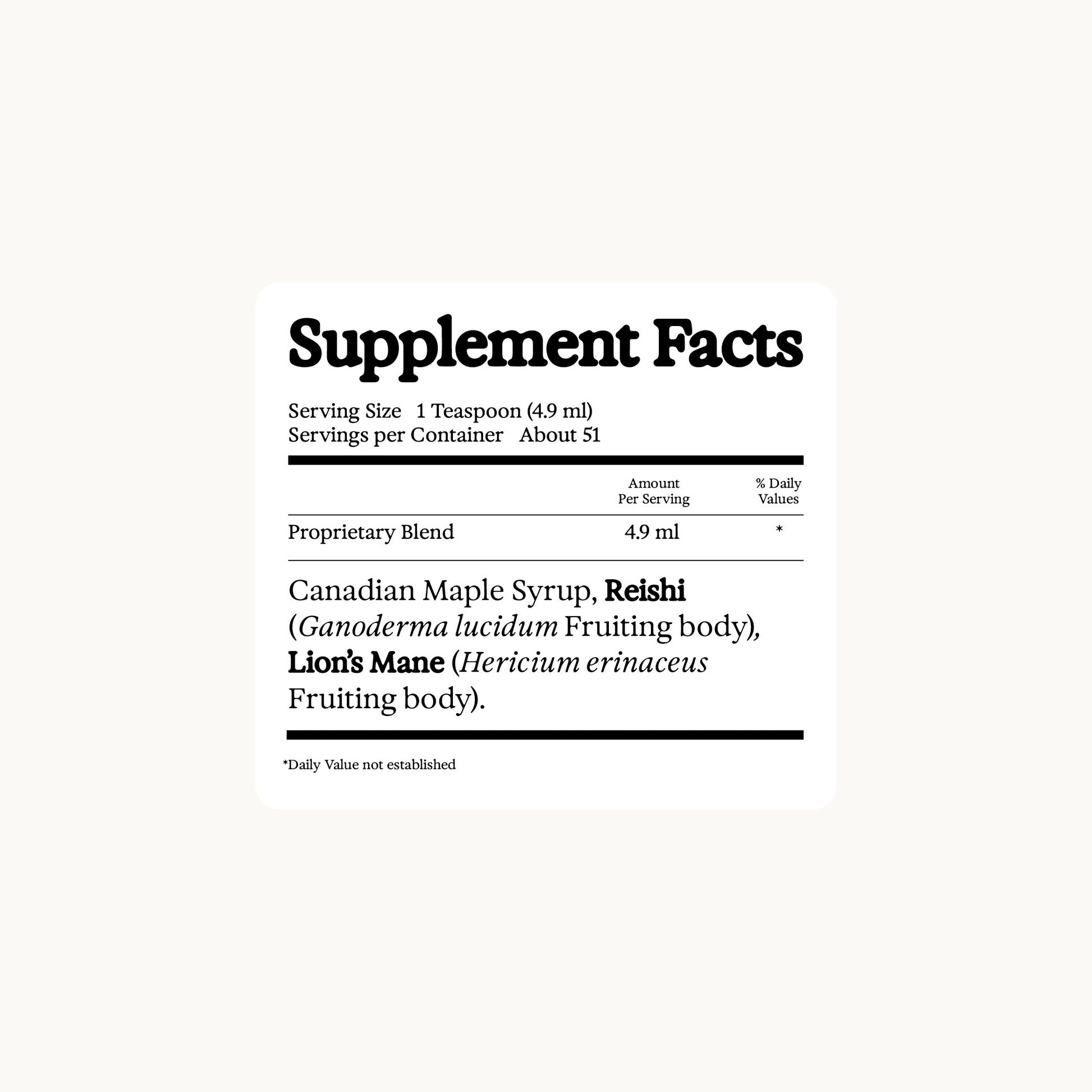 *New formulation* This product no longer contains Chaga or Turkey Tail. We've added cult favorite, Lion's Mane, instead. No changes to the flavor. All bottles purchased from August 1rst 2023 onward will be the new formulation.